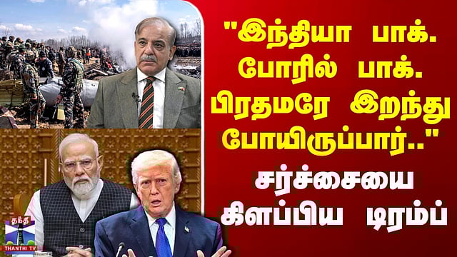 India Pakistan War | Trump Speech | "இந்தியா பாக். போரில் பாக். பிரதமரே இறந்து போயிருப்பார்.." - சர்ச்சையை கிளப்பிய டிரம்ப் இந்தியா, பாகிஸ்தான் போரில் தாம் தலையிடாவிட்டால் பாகிஸ்தான் பிரதமர் இறந்திருப்பார் என அமெரிக்க அதிபர் டிரம்ப் தெரிவித்த கருத்து பரபரப்பை ஏற்படுத்தியுள்ளது. அமெரிக்க நாடாளுமன்றக் கூட்டுக் கூட்டத்தில் உரையாற்றிய டிரம்ப், இந்தியா, பாகிஸ்தான் போர் அணு ஆயுத போராக மாறிவிடாமல் தாம் தடுத்து நிறுத்தியதாக மீண்டும் கூறியுள்ளார். மேலும், இந்தப் போரில் தாம் தலையிடாவிட்டால், பாகிஸ்தான் பிரதமரின் உயிர் பறிபோயிருக்கும் எனவும் டிரம்ப் தெரிவித்தார். ஆனால், மூன்றரை கோடி பேர் இறந்து போயிருப்பார்கள் என்று பாகிஸ்தான் பிரதமர் கூறினார் என சொல்வதற்கு பதிலாக, பாகிஸ்தான் பிரதமரே இறந்து போயிருப்பார் என வாய் தவறி டிரம்ப் கூறியது சர்வதேச அளவில் சலசலப்பை ஏற்படுத்தியிருக்கிறது...
