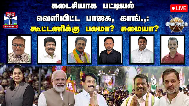 🔴LIVE : ஆயுத எழுத்து || கடைசியாக பட்டியல் வெளியிட்ட பாஜக, காங்.,: கூட்டணிக்கு பலமா? சுமையா?