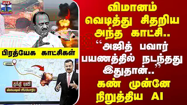 AjithPawar Plane Crash | அஜித் பவார் விமானம் வெடித்தது எப்படி? - துல்லியமாக காட்டும் பிரத்யேக காட்சி #ajithpawar #planecrash #ai #specialreport மகாராஷ்டிர துணை முதலமைச்சர் அஜித் பவார் சென்ற விமானம் கீழே விழுந்து வெடித்துச் சிதறியது. இதில் மொத்தம் 5 பேர் உயிரிழந்தனர். சரத்பவாருடன் விரைவில் இணைய இருந்த நிலையில், அஜித் பவாரின் மரணம் சந்தேகத்தை ஏற்படுத்துவதாகவும், இது குறித்து உச்ச நீதிமன்ற ஓய்வுபெற்ற நீதிபதி தலைமையில் விசாரணை நடத்த வேண்டும் என்றும் மேற்குவங்க முதலமைச்சர் மம்தா பானர்ஜி பகீர் கிளப்பியுள்ளார். இதுகுறித்து விவரிக்கிறார் சிறப்புச் செய்தியாளர் சலீம்...