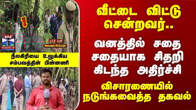 Special Report | வீட்டை விட்டு சென்றவர்..வனத்தில் சதை சதையாக சிதறி கிடந்த அதிர்ச்சி - விசாரணையில் நடுங்கவைத்த தகவல் உதகை அருகே புலி தாக்கியதில் புஸ்தால் குட்டன் என்பவர் உயிரிழந்தார். அவரது உடலை எடுக்கக் கூடாது என வனத்துறையினரிடம் பழங்குடியின மக்கள் வாக்குவாதத்தில் ஈடுபட்டனர். நடந்தது என்ன என்பதை விவரிக்கிறார் செய்தியாளர் கார்த்தி....