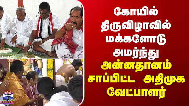 கோயில் திருவிழாவில் மக்களோடு அமர்ந்து அன்னதானம் சாப்பிட்ட அதிமுக வேட்பாளர் சாந்தி ராமு