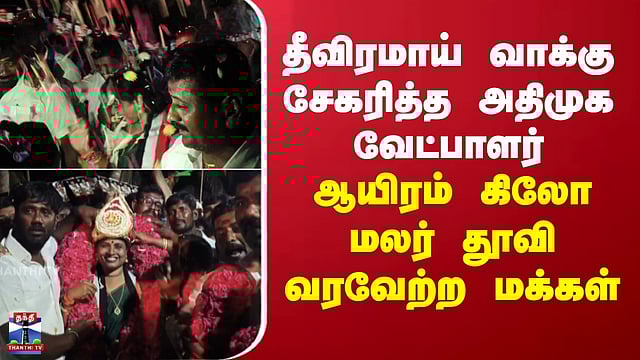 AIADMK Campaign | தீவிரமாய் வாக்கு சேகரித்த அதிமுக வேட்பாளர் - ஆயிரம் கிலோ மலர் தூவி வரவேற்ற மக்கள்