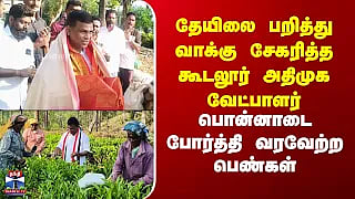 AIADMK | தேயிலை பறித்து வாக்கு சேகரித்த கூடலூர் அதிமுக வேட்பாளர் - பொன்னாடை போர்த்தி வரவேற்ற பெண்கள்