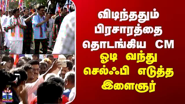 விடிந்ததும் பிரசாரத்தை தொடங்கிய முதல்வர் - ஓடி வந்து செல்ஃபி எடுத்த இளைஞர்