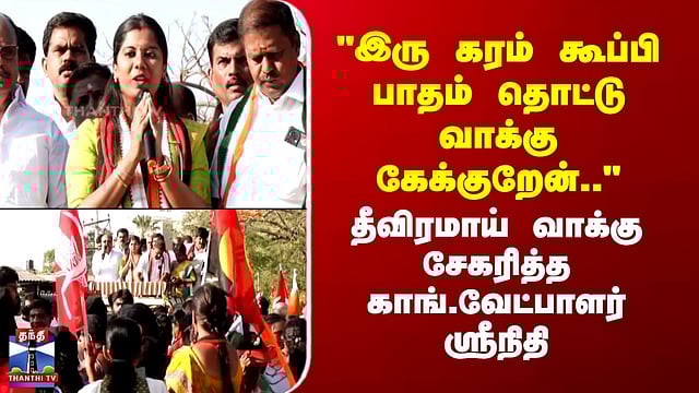 "இரு கரம் கூப்பி பாதம் தொட்டு வாக்கு கேக்குறேன்"- தீவிரமாய் வாக்கு சேகரித்த காங்.வேட்பாளர்