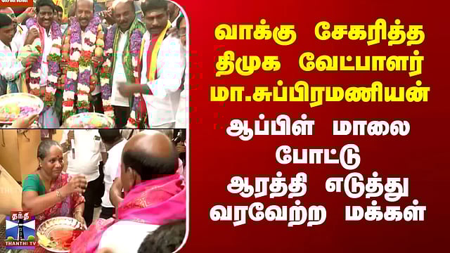 DMK | வாக்கு சேகரித்த திமுக வேட்பாளர் மா.சுப்பிரமணியன் - ஆப்பிள் மாலை போட்டு ஆரத்தி எடுத்த மக்கள்