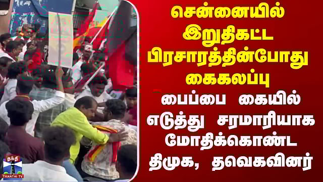 DMKvsTVK | சென்னையில் இறுதிகட்ட பிரசாரத்தின்போது கைகலப்பு - சரமாரியாக மோதிக்கொண்ட திமுக, தவெகவினர்