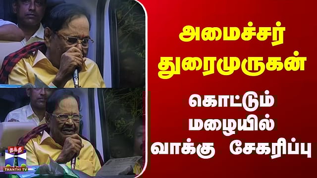 Durai Murugan | DMK | அமைச்சர் துரைமுருகன் கொட்டும் மழையில் வாக்கு சேகரிப்பு