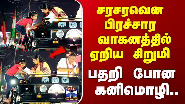 சரசரவென பிரச்சார வாகனத்தில் ஏறிய சிறுமி பதறி போன கனிமொழி..