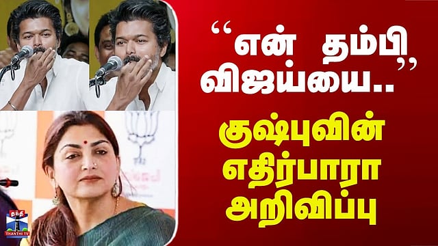 விஜய்யை விமர்சிக்க மாட்டேன் என குஷ்பூ சுந்தர் அறிவிப்பு அரசியல் களத்தில் தவெக தலைவர் விஜயை விமர்சிக்க மாட்டேன் என, பாஜக நிர்வாகியான குஷ்பூ சுந்தர் தெரிவித்துள்ளார். மதுரையில் செய்தியாளர்களிடம் பேசிய குஷ்பூ சுந்தர், நேரடி அரசியலில் களம் காணும் கணவர் சுந்தர்.சி-க்கு தனது அறிவுரை தேவையில்லை என்றும், மக்கள் நல்லவர்களுக்கு மட்டுமே வாக்களிப்பார்கள் என்றும் தெரிவித்தார். தொடர்ந்து தமிழக வெற்றி கழகத் தலைவர் விஜய் குறித்துப் பேசிய அவர், விஜய்யை அரசியல் ரீதியாகத் தான் விமர்சிக்கப் போவதில்லை எனத் தெரிவித்தார்.