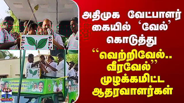 அதிமுக வேட்பாளர் கையில் `வேல்’ கொடுத்து - ``வெற்றிவேல்.. வீரவேல்’’ முழக்கமிட்ட ஆதரவாளர்கள்