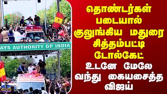 தொண்டர்கள் படையால் குலுங்கிய மதுரை சித்தம்பட்டி டோல்கேட் - உடனே மேலே வந்து கையசைத்த விஜய்