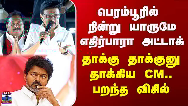 தவெக தலைவர் விஜய்யை மறைமுகமாக சாடிய முதல்வர் ஸ்டாலின் தமிழ்நாடு முதல்வரும், திமுகவின் தலைவருமான மு.க.ஸ்டாலின் பிரசாரத்தின் போது, புதிதாக அரசியலுக்கு வந்து நாடகமாடுபவர்கள் தேவையா என்று சிந்தித்து பாருங்கள் என, தவெக தலைவர் விஜய்யை மறைமுகமாக சாடியுள்ளார். சென்னை வியாசர்பாடியில் பெரம்பூர் தொகுதி திமுக வேட்பாளர் ஆர்.டி.சேகரை ஆதரித்து முதல்வர் மு.க.ஸ்டாலின் வாக்கு சேகரிப்பில் ஈடுபட்டார். அவருக்கு வழிநெடுகிலும் திரண்டிருந்த ஏராளமான தொண்டர்கள் உற்சாக வரவேற்பு அளித்தனர். அப்போது பேசிய முதல்வர், புதிதாக அரசியலுக்கு வந்து நாடகமாடுபவர்கள் வேண்டுமா அல்லது உங்கள் வீட்டுப் பிள்ளையாகப் பணியாற்றும் ஆர்.டி. சேகர் வேண்டுமா என்பதை மக்களே முடிவு செய்யுங்கள் என கூறினார்.