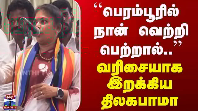 ``பெரம்பூரில் நான் வெற்றி பெற்றால்..’’ - வரிசையாக இறக்கிய திலகபாமா