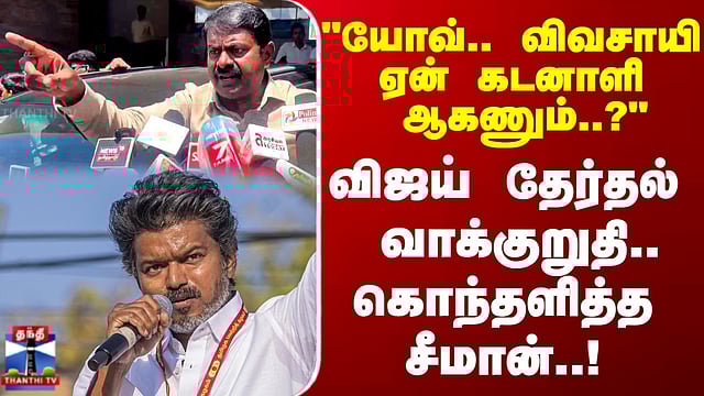 Seeman | "யோவ்.. விவசாயி ஏன் கடனாளி ஆகணும்..?" விஜய் தேர்தல் வாக்குறுதி.. கொந்தளித்த சீமான்