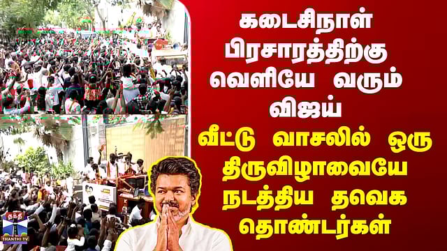 இறுதிக்கட்ட பிரசாரத்திற்காக தமிழக வெற்றிக் கழக தலைவர் விஜய் சென்னை நீலாங்கரை இல்லத்தில் இருந்து புறப்பட்ட உள்ள நிலையில், அவரது வீட்டின் முன்பு ஏராளமான தொண்டர்கள் குவிந்துள்ளனர்...