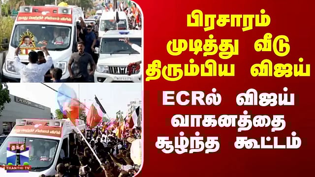 பிரசாரம் முடித்து வீடு திரும்பிய விஜய்- ECRல் விஜய் வாகனத்தை சூழ்ந்த கூட்டம்