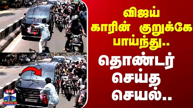 TVK Vijay | விஜய் காரின் குறுக்கே பாய்ந்து.. தொண்டர் செய்த செயல்..