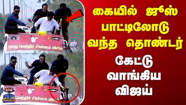 கையில் ஜூஸ் பாட்டிலோடு வந்த தொண்டர்.. கேட்டு வாங்கிய விஜய்