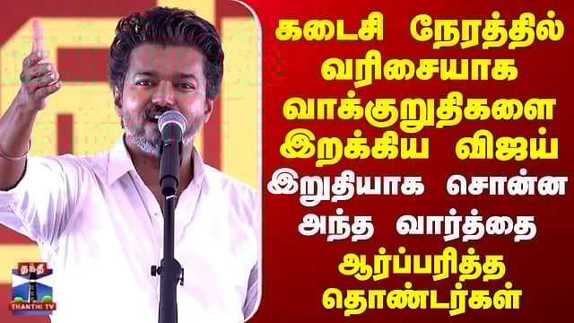 TVK Vijay Speech |கடைசி நேரத்தில் வரிசையாக வாக்குறுதிகளை இறக்கிய விஜய்..இறுதியாக சொன்ன அந்த வார்த்தை