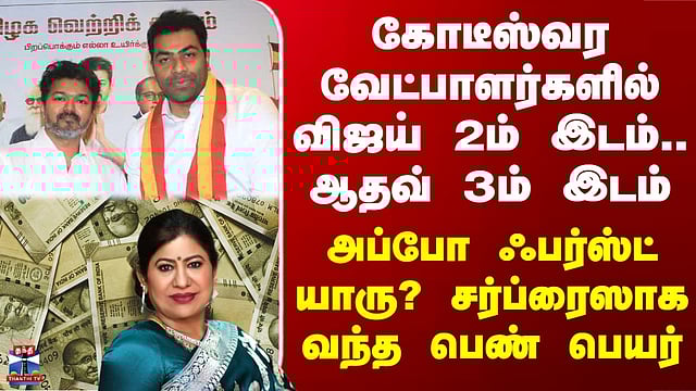 கோடீஸ்வர வேட்பாளர்களில் விஜய் 2ம் இடம்.. ஆதவ் 3ம் இடம் - அப்போ ஃபர்ஸ்ட் யாரு? சர்ப்ரைஸாக வந்த பெண் பெயர்