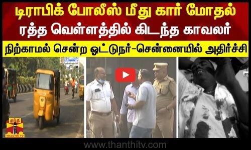 - சென்னையில் வேகமாக வந்த கார் போக்குவரத்துக் காவலர் மீது மோதி விபத்து