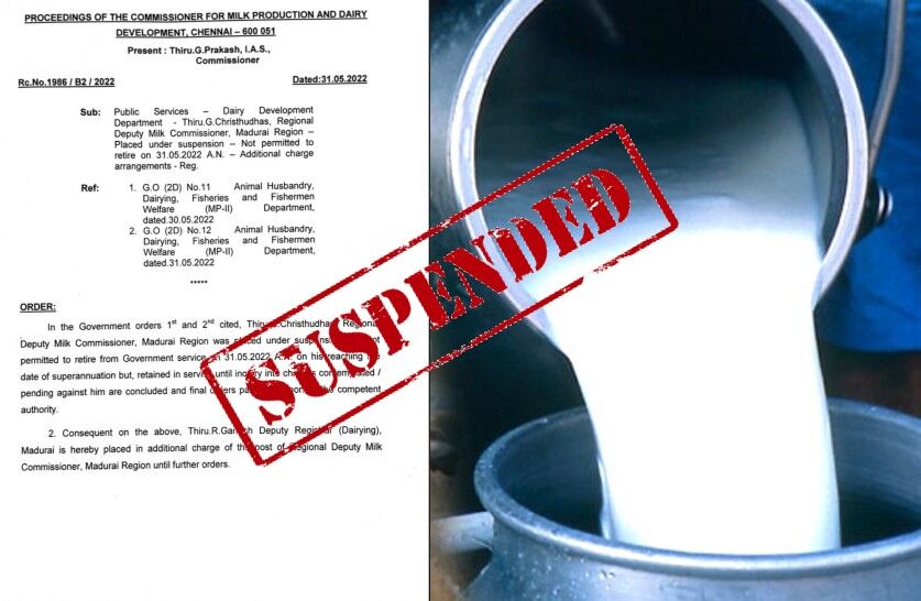 மதுரை மண்டல பால்வளத்துறை துணை ஆணையர் கிறிஸ்துதாஸ் பணியிடை நீக்கம்