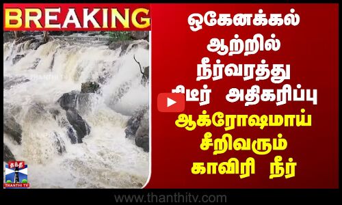 ஒகேனக்கல் ஆற்றில் நீர்வரத்து திடீர் அதிகரிப்பு - ஆக்ரோஷமாய் சீறிவரும் காவிரி நீர்
