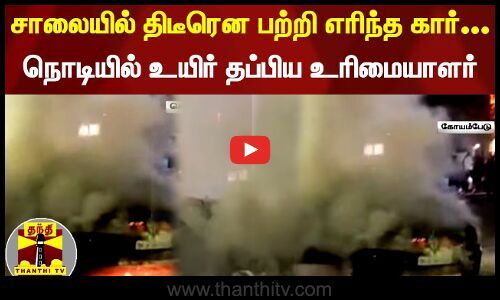 சாலையில் திடீரென பற்றி எரிந்த கார்..நொடியில் உயிர் தப்பிய உரிமையாளர் | Chennai | Car | Fire Accident