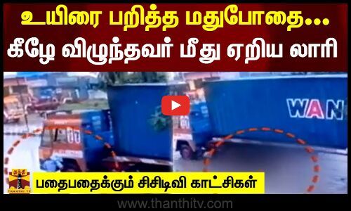 சென்னையில் மதுபோதையில் நிலை தடுமாறி கீழே விழுந்த வடமாநில இளைஞர் மீது கண்டெய்னர் லாரி ஏறி இறங்கியதில் அவர் சம்பவ இடத்திலேயே உயிரிழந்தார். உயிரிழந்த நபர், சென்னை திருவொற்றியூரில் குடும்பத்துடன் வசித்து வந்த பீகாரை சேர்ந்த அசோக் கெலாட் என்பவர் விசாரணையில் தெரிய வந்துள்ளது. இது குறித்து போலீசார் விசாரணை நடத்தி வரும் நிலையில், விபத்து குறித்த சிசிடிவி காட்சிகள் வெளியாகியுள்ளது.