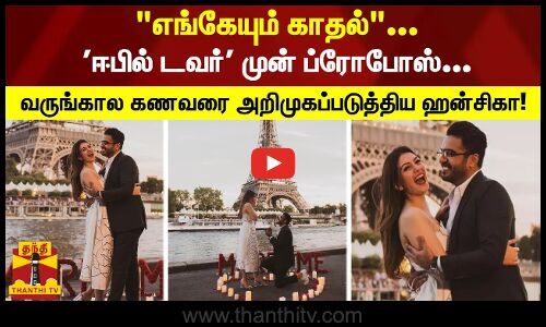 ஈஃபில் டவர் முன்பு தனது வருங்கால கணவருடன் நடிகை ஹன்சிகா மோத்வானி எடுத்துக்கொண்ட புகைப்படங்கள் அதிகம் பகிரப்பட்டு வருகிறது. எங்கேயும் காதல் படம் மூலம் அறிமுகமாக தமிழக ரசிகர்களின் மனதை கவர்ந்த ஹன்சிகா மோத்வானி, சோஹைல் கதுரியா என்ற தொழிலதிபரை டிசம்பரில் மணமுடிக்க உள்ளதாக பரவலாக பேசப்பட்டு வந்தது. இதனை உறுதி செய்யும் விதமாக பிரான்ஸின் பாரீஸ் நகரில் உள்ள உலகப்புகழ்பெற்ற ஈஃபில் டவர் முன்பு சோஹைல் - ஹன்சிகா ஜோடி திருமண செய்தியை பகிர்ந்துள்ளது.