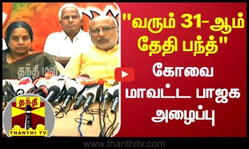 "வரும் 31ஆம் தேதி பந்த்" - கோவை மாவட்ட பாஜக அழைப்பு | Kovai | BJP | Bandh