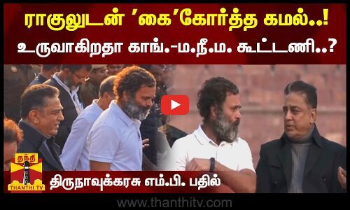 ராகுலுடன் 'கை'கோர்த்த கமல்..!உருவாகிறதா காங்.-ம.நீ.ம. கூட்டணி..? திருநாவுக்கரசு எம்.பி. பதில்