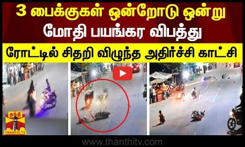 திடீரென சாலையை கடந்த வாகனஓட்டி..வேகமாக வந்த நபர்..அடுத்தடுத்து ரோட்டில் சிதறி விழுந்த 3 பைக்குகள்