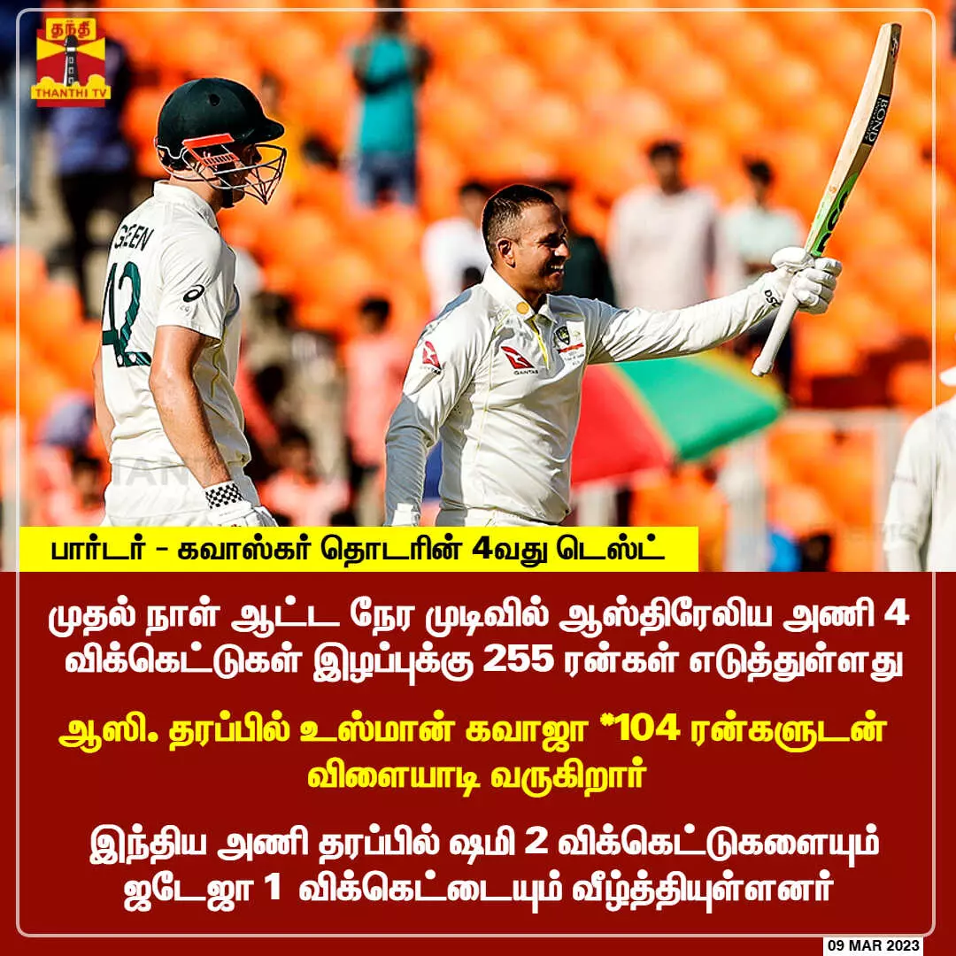 - ஆஸி. தரப்பில் உஸ்மான் கவாஜா *104 ரன்களுடன் விளையாடி வருகிறார்
