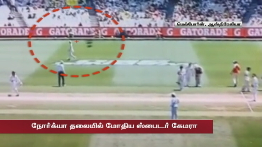 பாக்சிங் டே டெஸ்ட் போட்டி- நோர்க்யா தலையில் மோதிய ஸ்பைடர் கேமரா