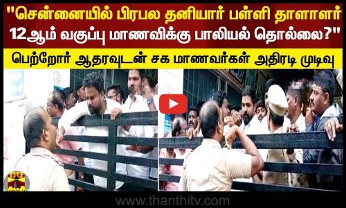 சென்னையில் 12ஆம் வகுப்பு தனியார் பள்ளி மாணவிக்கு பாலியல் தொல்லை என புகார -போராட்டத்தில் சக மாணவர்கள்