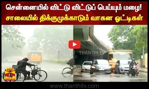 சென்னையில் விட்டு விட்டுப் பெய்யும் மழை! - சாலையில் திக்குமுக்காடும் வாகன ஓட்டிகள்