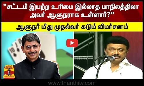 - தொடர்ந்து பேசிய முதல்வர் ஸ்டாலின், சாதாரண சட்டம் இயற்றக்கூட உரிமை இல்லாத மாநிலத்திற்குத்தான் ஆளுநராக உள்ளாரா என ஆளுநர் ஆர்.என்.ரவியை விமர்சித்தார்.