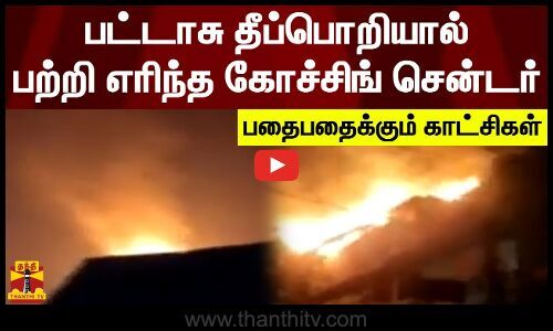 பட்டாசு தீப்பொறியால் தீ விபத்து - தீப்பற்றி எரிந்த கோச்சிங் சென்டர்