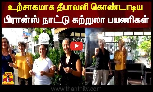 இன்று மாமல்லபுரம் தெருக்களில் தீபாவளியை கொண்டாடும் வகையில், பிரான்ஸ் நாட்டு பெண்கள் 5 பேரும் பட்டாசு வெடித்தும், புஸ்வானம், சுறுசுறு கம்பி கொளுத்தியும் தீபாவளி கொண்டாடி மகிழ்ந்தனர்.