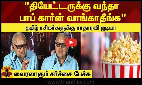 "தியேட்டருக்கு வந்தா பாப் கார்ன் வாங்காதீங்க"தமிழ் ரசிகர்களுக்கு ராதாரவி ஐடியா வைரலாகும் பேச்சு
