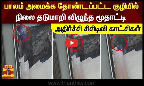 பாலம் அமைக்க தோண்டப்பட்ட குழியில் நிலை தடுமாறி விழுந்த மூதாட்டி - அதிர்ச்சி சிசிடிவி காட்சிகள்