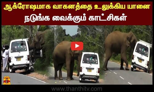 ஆக்ரோஷமாக வாகனத்தை உலுக்கிய யானை