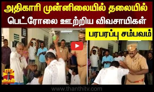 அதிகாரி முன்னிலையில் தலையில் பெட்ரோலை ஊற்றிய விவசாயிகள் - பரபரப்பு சம்பவம்