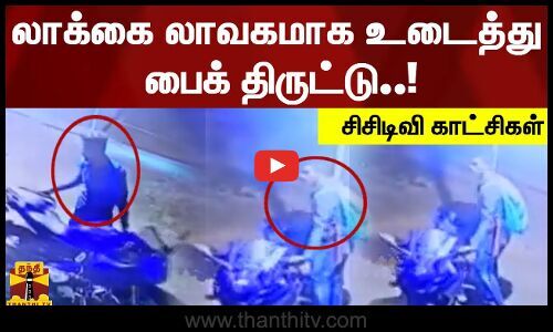 லாக்கை லாவகமாக உடைத்து பைக் திருட்டு....! - சிசிடிவி காட்சிகள்
