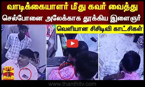 வாடிக்கையாளர் மீது கவர் வைத்து செல்போனை அலேக்காக தூக்கிய இளைஞர் - வெளியான சிசிடிவி காட்சிகள்