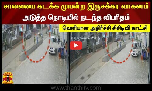 சாலையை கடக்க முயன்ற இருசக்கர வாகனம் .. அடுத்த நொடியில் நடந்த விபரீதம் - வெளியான சிசிடிவி காட்சி