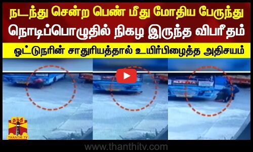 நடந்து சென்ற பெண் மீது மோதிய பேருந்து - நொடிப்பொழுதில் நிகழ இருந்த விபரீதம் - ஓட்டுநரின் சாதுரியத்தால் உயிர்பிழைத்த அதிசயம்