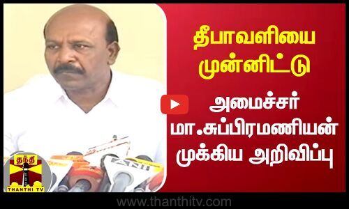 தீபாவளியை முன்னிட்டு மாவட்ட அரசு மருத்துவமனைகளில் தீக்காயங்களுக்கு சிகிச்சை அளிக்க சிறப்பு பிரிவு ஏற்படுத்தப்பட்டுள்ளதாக அமைச்சர் மா.சுப்பிரமணியன் தெரிவித்துள்ளார். சென்னை தேனாம்பேட்டை டி.எம்.எஸ். வளாகத்தில் புதிய ஆரம்ப சுகாதார நிலையங்கள் அமைப்பது தொடர்பாக அமைச்சர் மா.சுப்பிரமணியன் செய்தியார்களை சந்தித்தார். அப்போது பேசிய அமைச்சர், அடுத்த ஓராண்டுக்குள் தமிழகத்தில் புதிதாக 50 ஆரம்ப சுகாதார நிலையங்கள் அமைக்கப்படும் என்றார்.